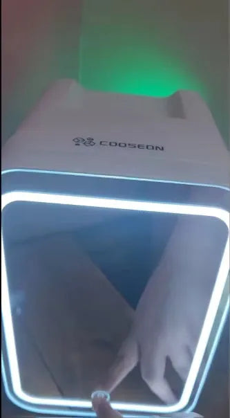 "OMG, this mini fridge is a game-changer for my skincare routine! I love how my creams and serums stay cool and fresh. The mirror on the door is perfect for quick touch-ups. It's super sleek and fits perfectly on my vanity. Totally worth it!🎉💄"